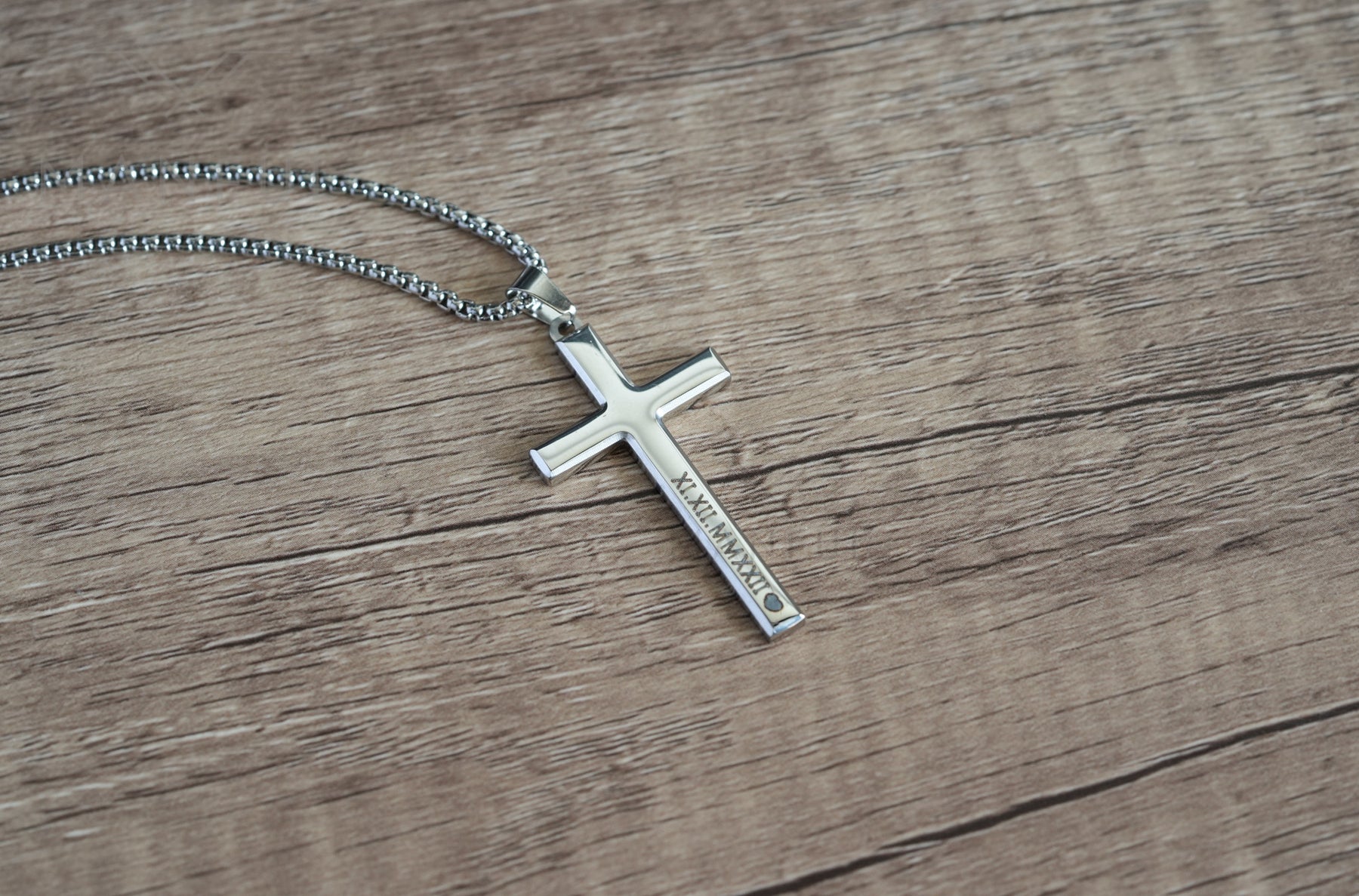 The Silver Cross Pendant is crafted from solid 316L stainless steel and polished for a sleek, mirror-polished look. Its slim, geometric profile makes a sharp statement without looking bulky.